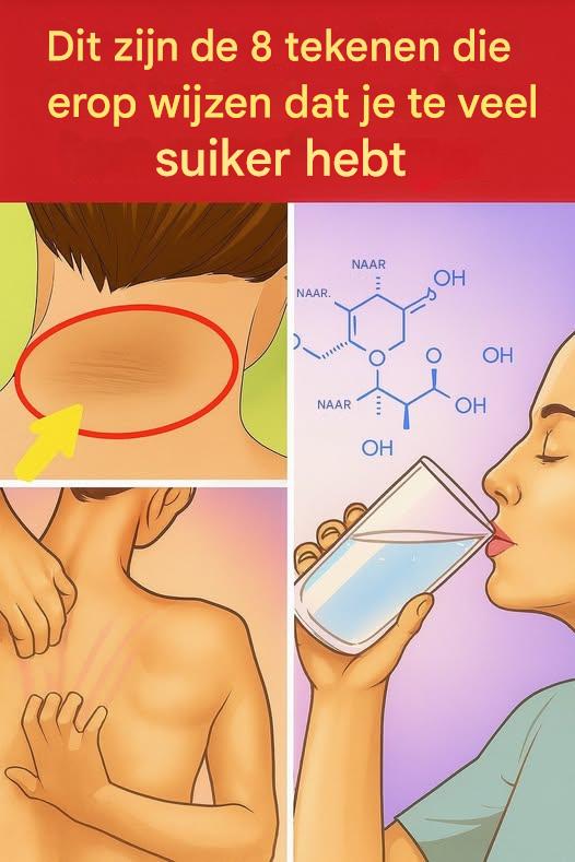 Een zichtbaar teken van te veel suiker is het verschijnen van donkere, fluweelachtige vlekken op plekken zoals de nek, oksels of rug. Dit wordt vaak in verband gebracht met insulineresistentie.